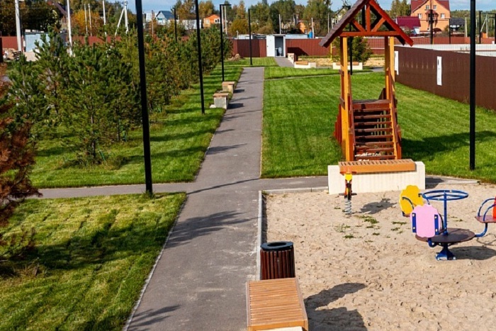 Небольшой закрытый поселок располагает всем, что необходимо для полноценного отдыха — несколько спортивных площадок, прогулочные бульвары, зоны отдыха.